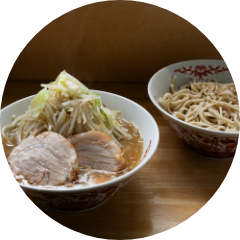 自家製の極太麺は小麦の香りもよく、こってりスープと相性バッチリ。ワシワシとした噛み応えがクセになる!
